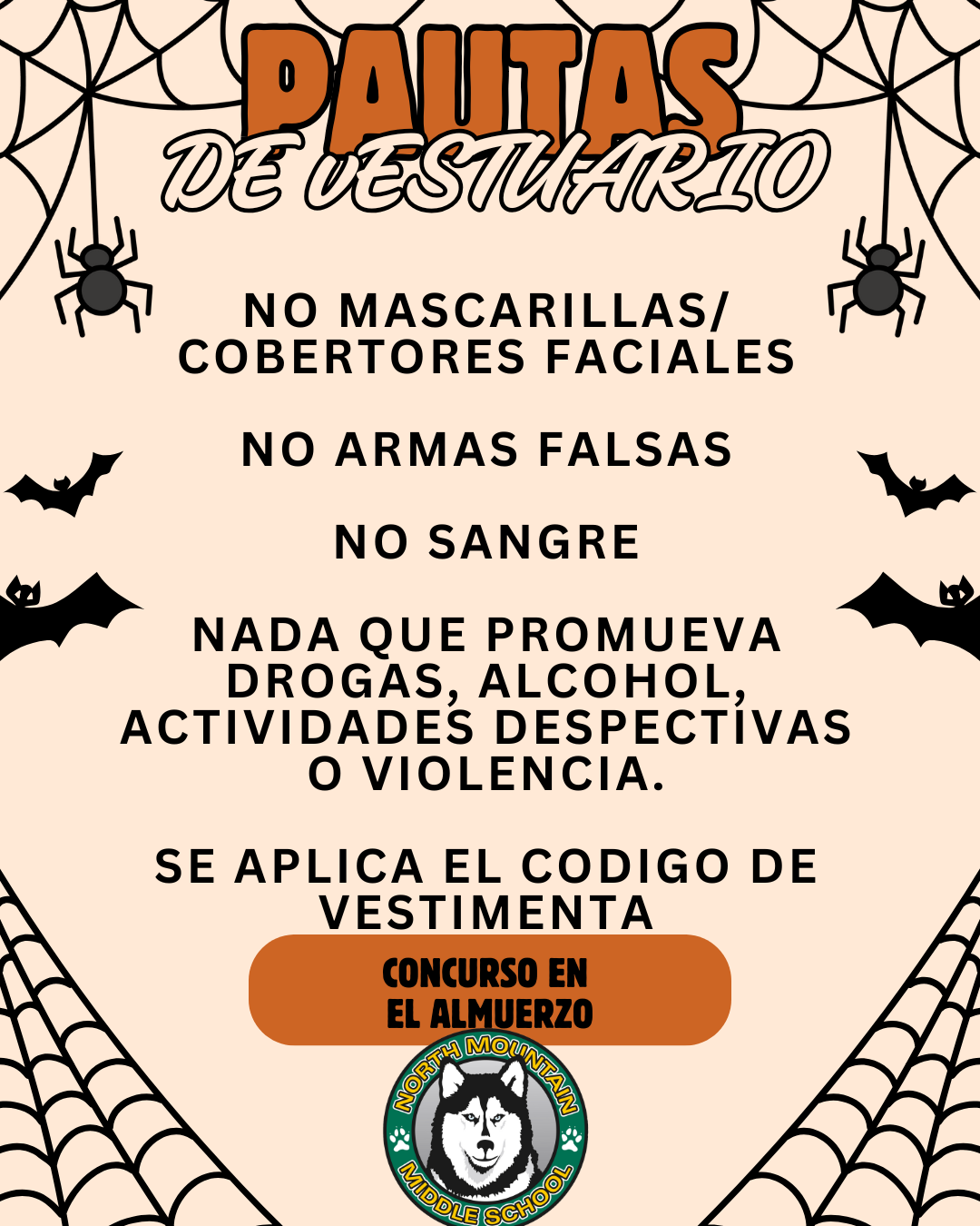 Halloween Costume Guidelines for This Friday We are thrilled to have students dress up for Halloween here at NMMS but we do ask that parents and guardians review the Costume Guidelines to ensure their child complies with these expectations. Thanks, and HAPPY HALLOWEEN ! ! ! Print